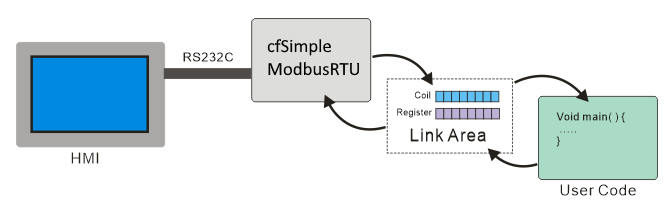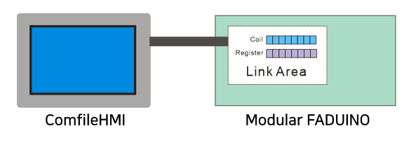 따라서, 유저는 MODBUS 통신에 신경쓸 필요없이, 링크배열에 데이터를 넣거나 읽기만 하면 됩니다. 해당 링크배열은 결국 ComfileHMI 화면에 있는 위젯 (통신기능이 내장된 화면 구성요소 : 버튼, 램프등등)과 연결되며, 이를 통해 동작실행여부 및 상태확인등을 할 수 있습니다.