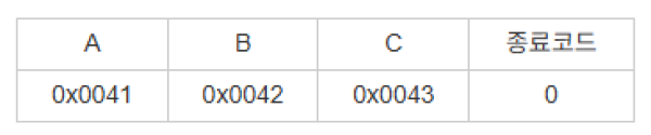 ※ 실제로는 각 위치에 유니코드 값이 저장됩니다.