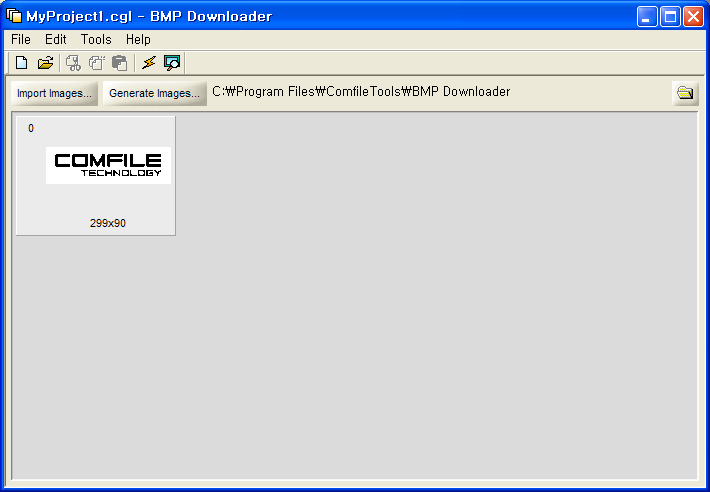 3. BMP 다운로드에서 New Gallery 를 만든뒤, 그안에 좀전에 만들어둔 BMP파일을 불러오세요. (CUTOUCH에 저장할 수 있는 용량한도 내에서) 여러개의 BMP파일을 불러올 수 있습니다. (Gallery란 프로젝트와 같은 개념입니다. 여러개의 BMP파일을 하나의 폴더안에 관리하기 위해서 필요합니다.)