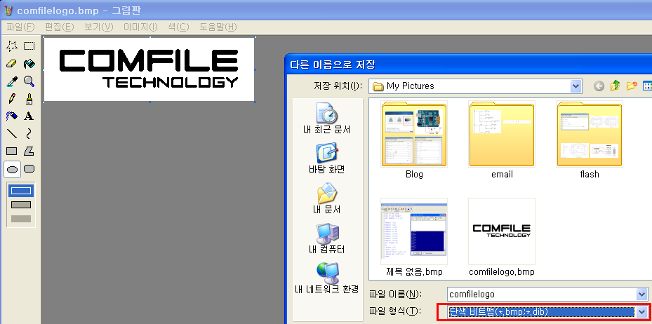 1. 우선 BMP이미지를 단색BMP파일로 준비해주세요. 사이즈는 320×240을 넘으면 안됩니다.
