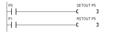 SETOUT 은 입력이 있을 때 출력을 ON 하고, ON 상태를 계속 유지합니다. 반대로 RSTOUT 은 입력이 있을 때 출력을 OFF 한 뒤 OFF 상태를 계속 유지합니다.