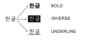 글꼴에 볼드 (굵게 표시), 밑줄, 반전효과를 추가할 수 있는 명령입니다.