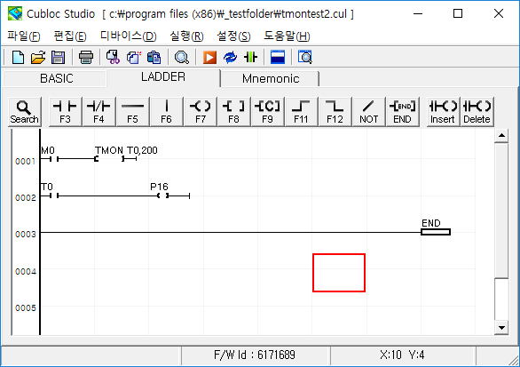 베이직 프로그램을 잘 보세요. P16에 2초동안 High출력을 하고 싶을때, M0 를 On 하면 됩니다. 그 뒷일은 레더한테 맡겨두면 됩니다. 레더가 알아서 P16을 2초동안 On시키고, 2초가 지나면 Off해줍니다.
