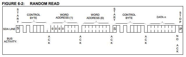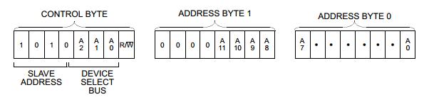 데이터 시트를 보면 24LC32의 어드레스는 이렇게 3바이트로 보내야 된다고 되어 있습니다. 그래서 큐블록 소스에서 이렇게 명령어를 썼습니다.