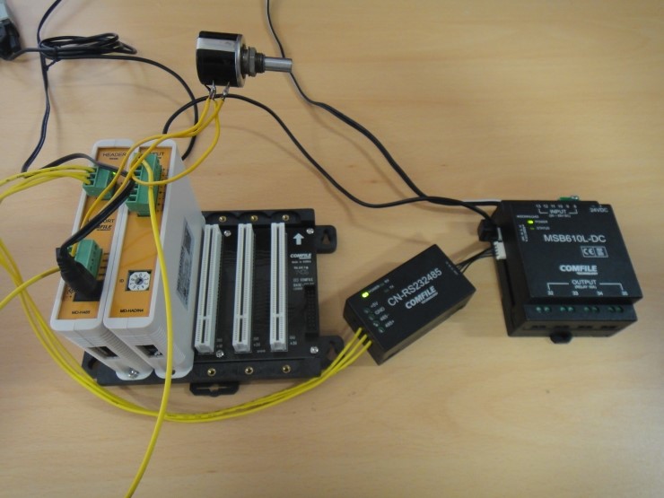 큐블록 MSB610L-DC를 사용했습니다.이 제품은 RS232C 채널1만 있으므로, RS232-TO-RS485 변환기가 필요합니다. CN-RS232485변환기를 사용해서 MODPORT와 연결했습니다.