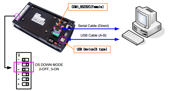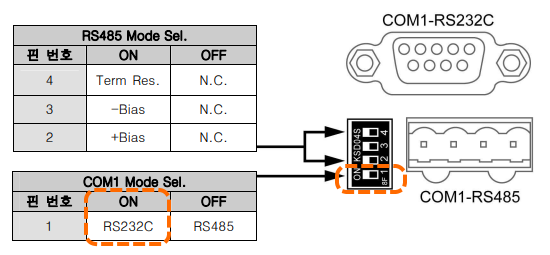 - Dip스위치 3번 ON : OS 다운로드모드, OFF : 노멀모드(윈도우 데스트탑 모드)