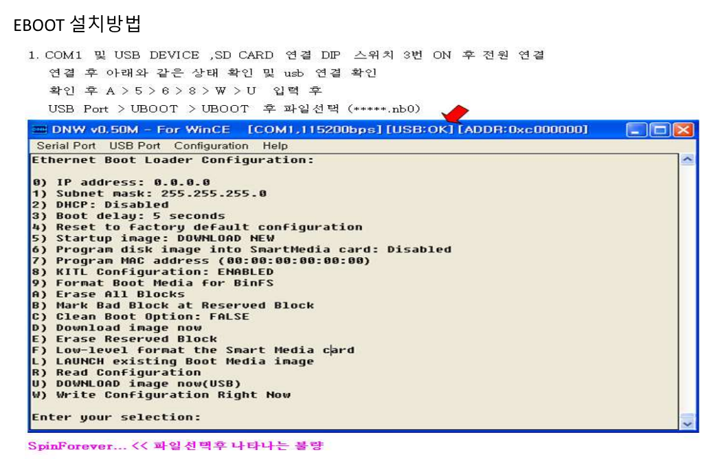 - nb0파일 라이팅후 spinforever에러가 나오면, 다시 하면된다. 안나올때까지