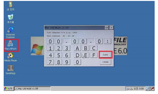 2) 원하시는 MAC Address를 설정 후, Save 버튼을 클릭합니다.