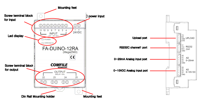 - UPLOAD 포트 : 프로그램 업로드용 포트 (USB-C 또는 RS232C)