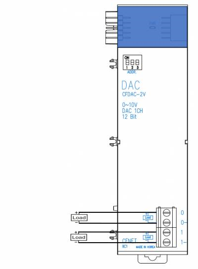 - CFDAC-1V은 하나의 시스템에 서로 다른 어드레스 0x00~0x07 설정으로 최대 8개 까지 사용 가능합니다.