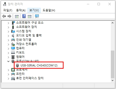 ※ 드라이버 설치후 COM포트가 보이지 않는다면, 드라이버 설치가 잘못되었거나, 케이블에 문제가 있는 경우입니다.