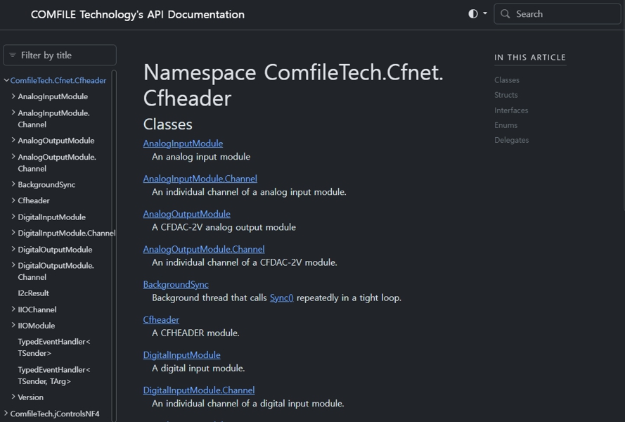 - CFHeader API 문서는 프로그램 작성시 CFNET 모듈의 클래스, 메서트, 속성 등을 설명합니다.