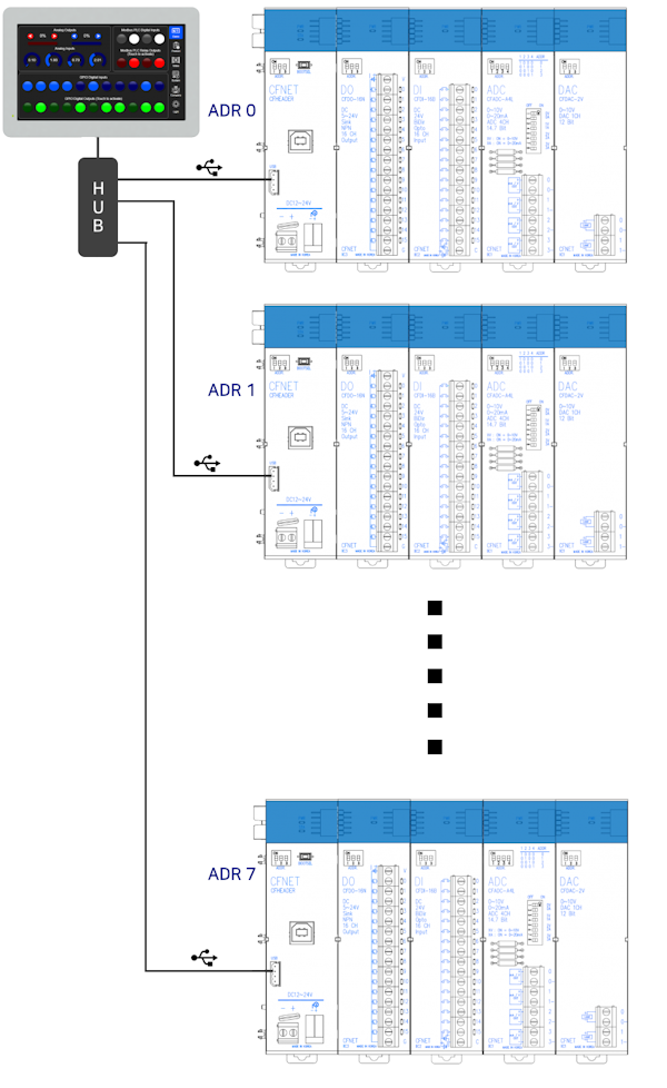 CFHEADER + CFNET I/O 모듈과 결합하여 PC가 CFNET IO 모듈을 제어할 수 있게 합니다.