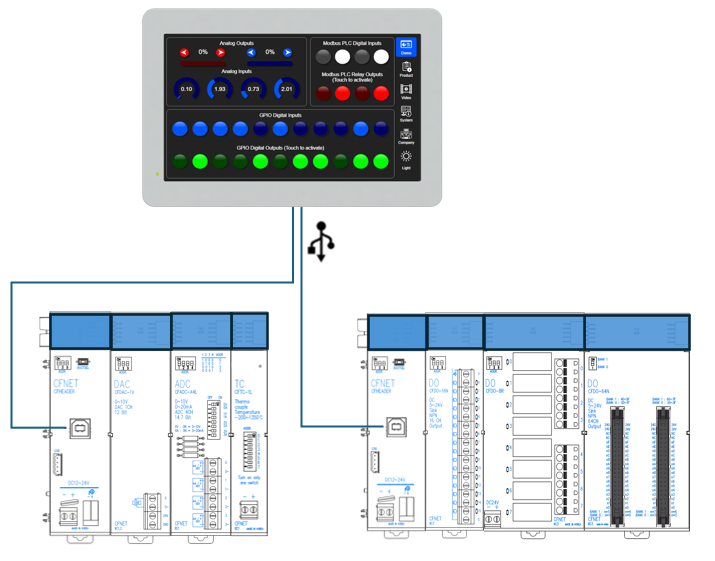 - 하나의 CFHDR-8U에 최대 16개의 CFNET I/O모듈을 연결할 수 있으니까, 한 시스템에서 최대 사용할 수 있는 I/O숫자는 8*16 인 128개의 I/O모듈입니다.