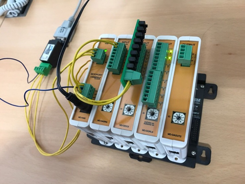 MODPORT 제품은 RS485로 제어하는 필드I/O제품입니다. PC 에서 CF-TERM 으로 간단하게 실험해보실 수 있습니다. PC에는 RS485포트가 없으므로, 우선 RS232C-TO-RS485 컨버터를 사용해서 MODPORT와 PC 사이를 연결하였습니다.