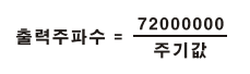 PWM 파형의 주파수는 주기값(pwmwidth)에 의해서 결정됩니다. 주기값으로 부터 다음공식에 의해 실제주파수를 계산할 수 있습니다.
