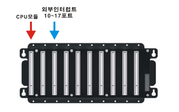 따라서, 이 기능을 사용하기 위해서는 “기본 DIO 모듈”중 입력모듈을 +10 슬롯에 장착해야 합니다.